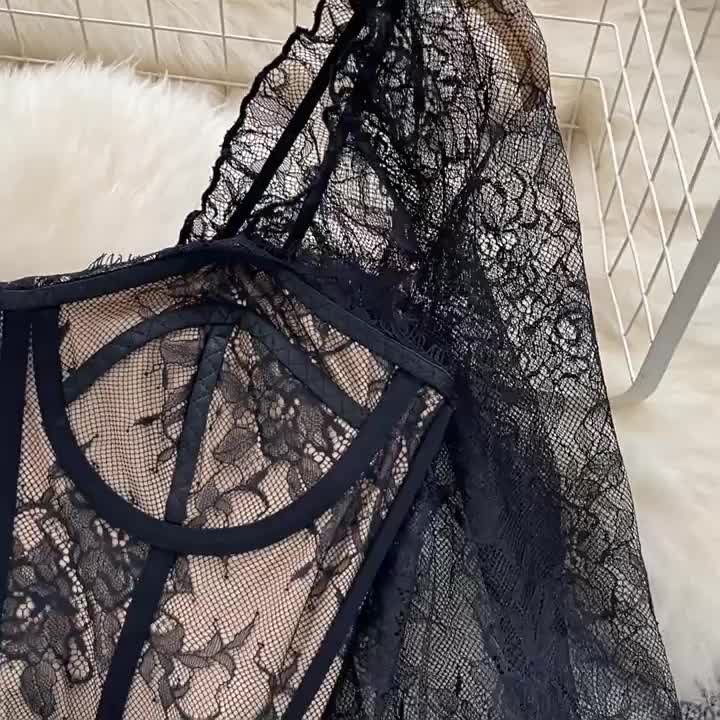 Cropped Renda Manga Flare Decote Quadrado Luna