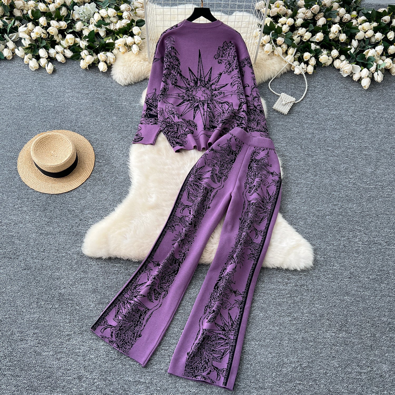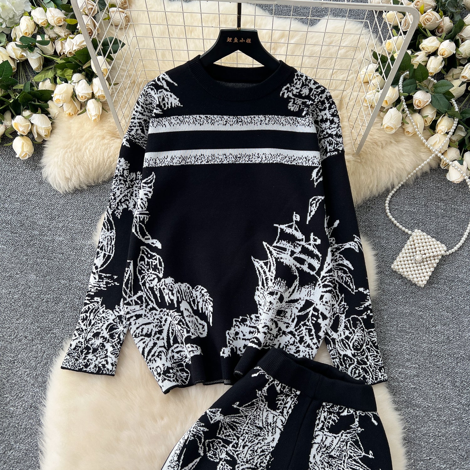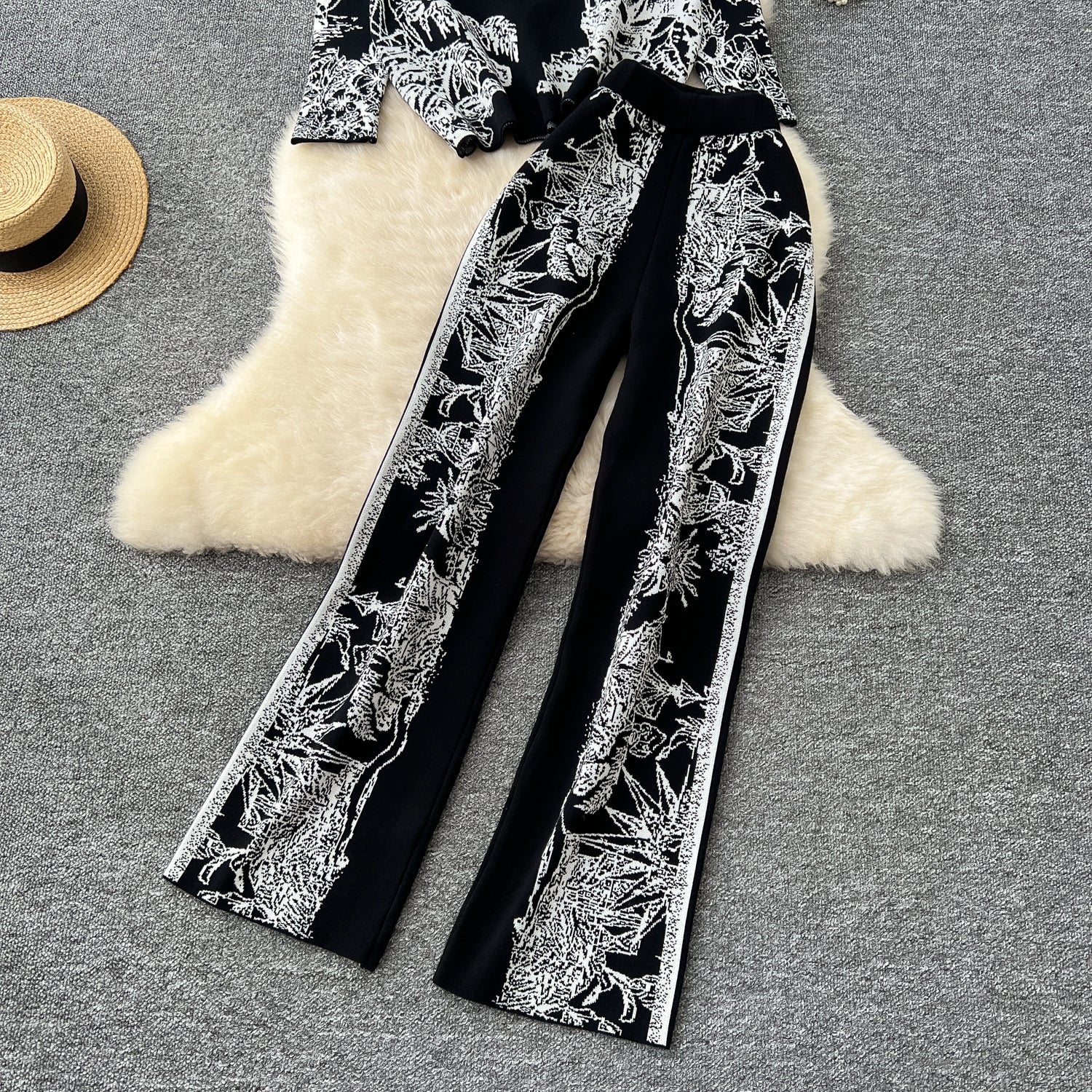 Conjunto Cardigã Jacquard Manga Longa Calça Bianca