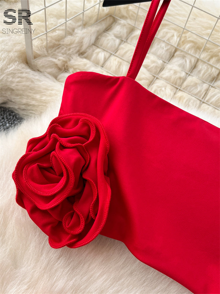 Conjunto Cropped Flor Alça Fina Calça Longa Bianca