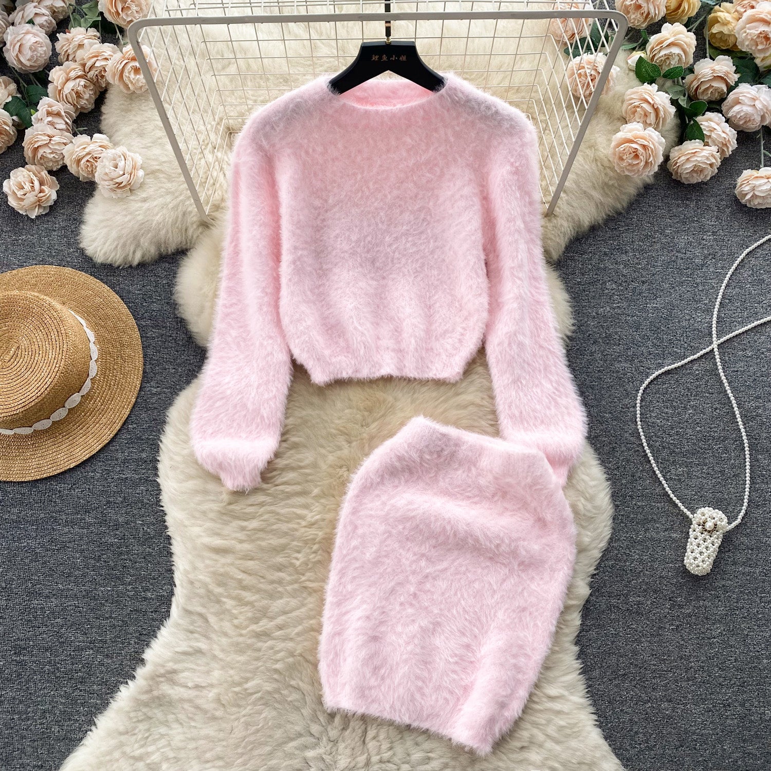 Conjunto Manga Longa Saia Curta Bianca