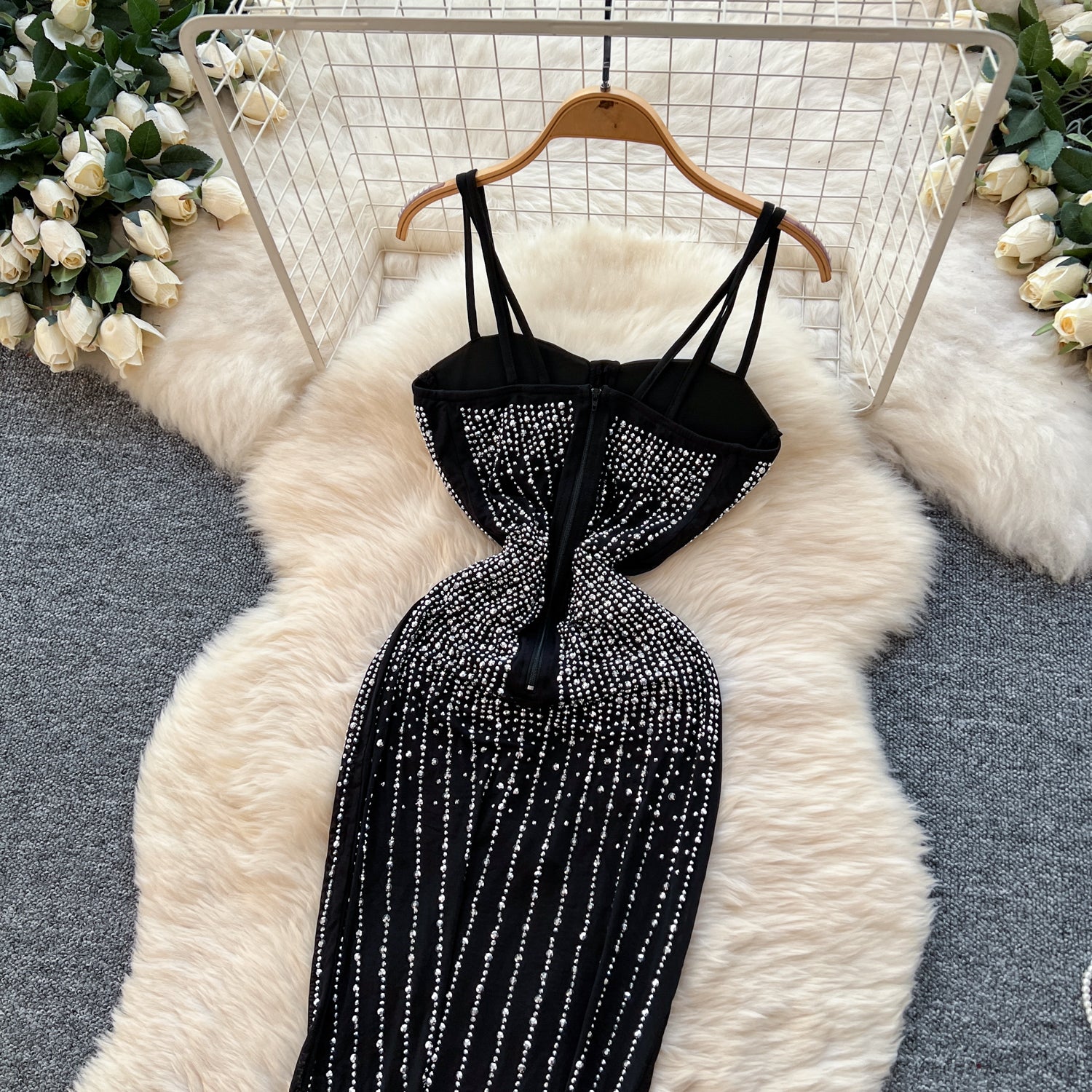 Vestido Longo Alça Fina Pérola Chloe